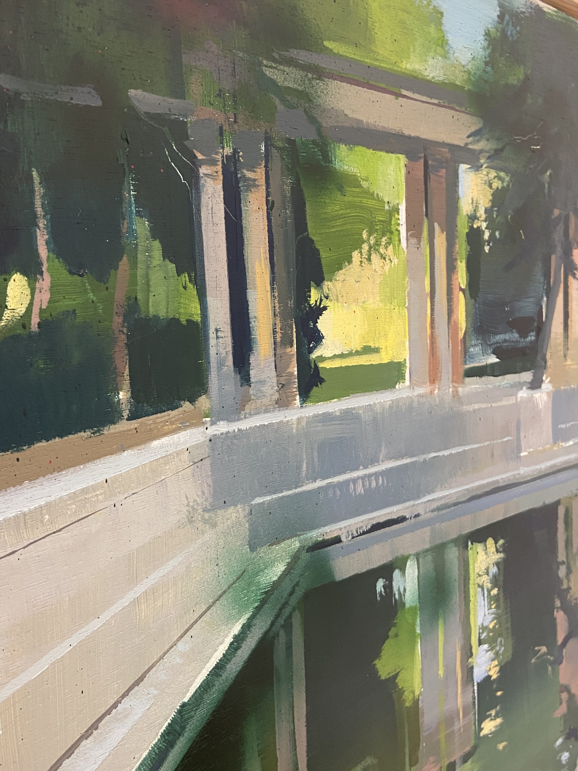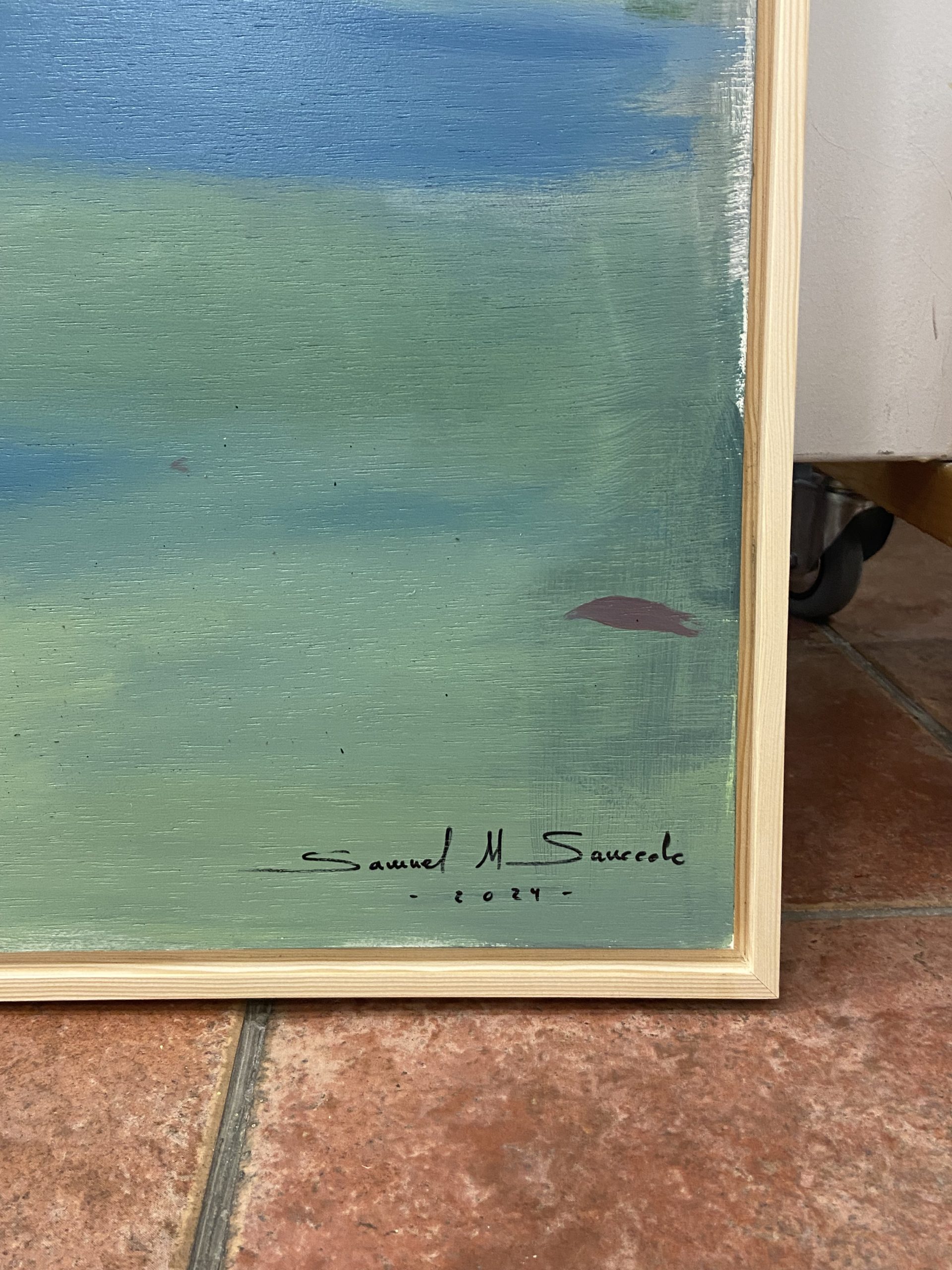 En este sentido, el agua simboliza tanto la vida como la fluidez. Además, refleja su propio movimiento y, al mismo tiempo, el paso del tiempo. Cada pincelada, por consiguiente, está cuidadosamente pensada para transmitir continuidad y cambio. Combinando técnicas tradicionales con un enfoque contemporáneo, busco crear una pintura única. Por último, mi intención es que esta obra hable del presente y del fluir eterno de la naturaleza.